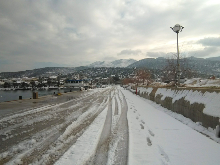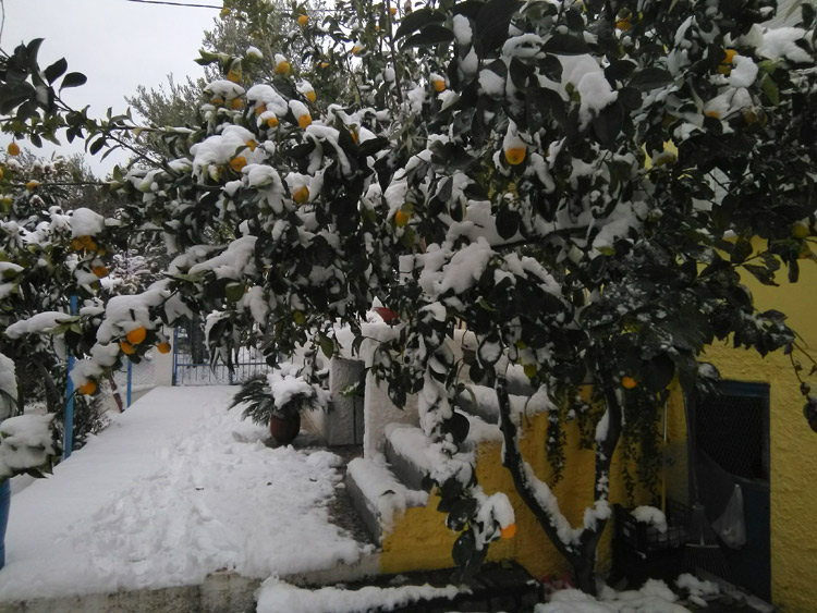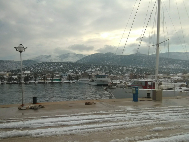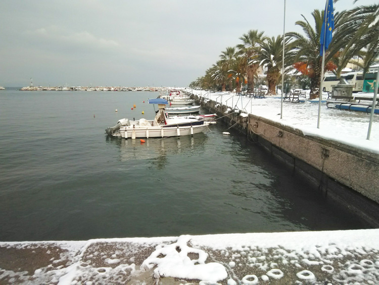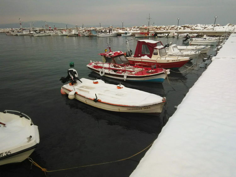 Снег на острове Тасос, Греция — это изумительное зрелище. Заснеженные лодки, пальмы, оливковые и лимонные деревья — согласитесь, это выглядит очень экзотично.